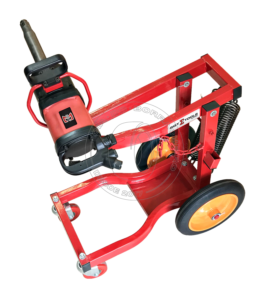 Carrinho para Chave de Impacto com sistema de molas que além do suporte permite utilização do equipamento com agilidade e segurança.